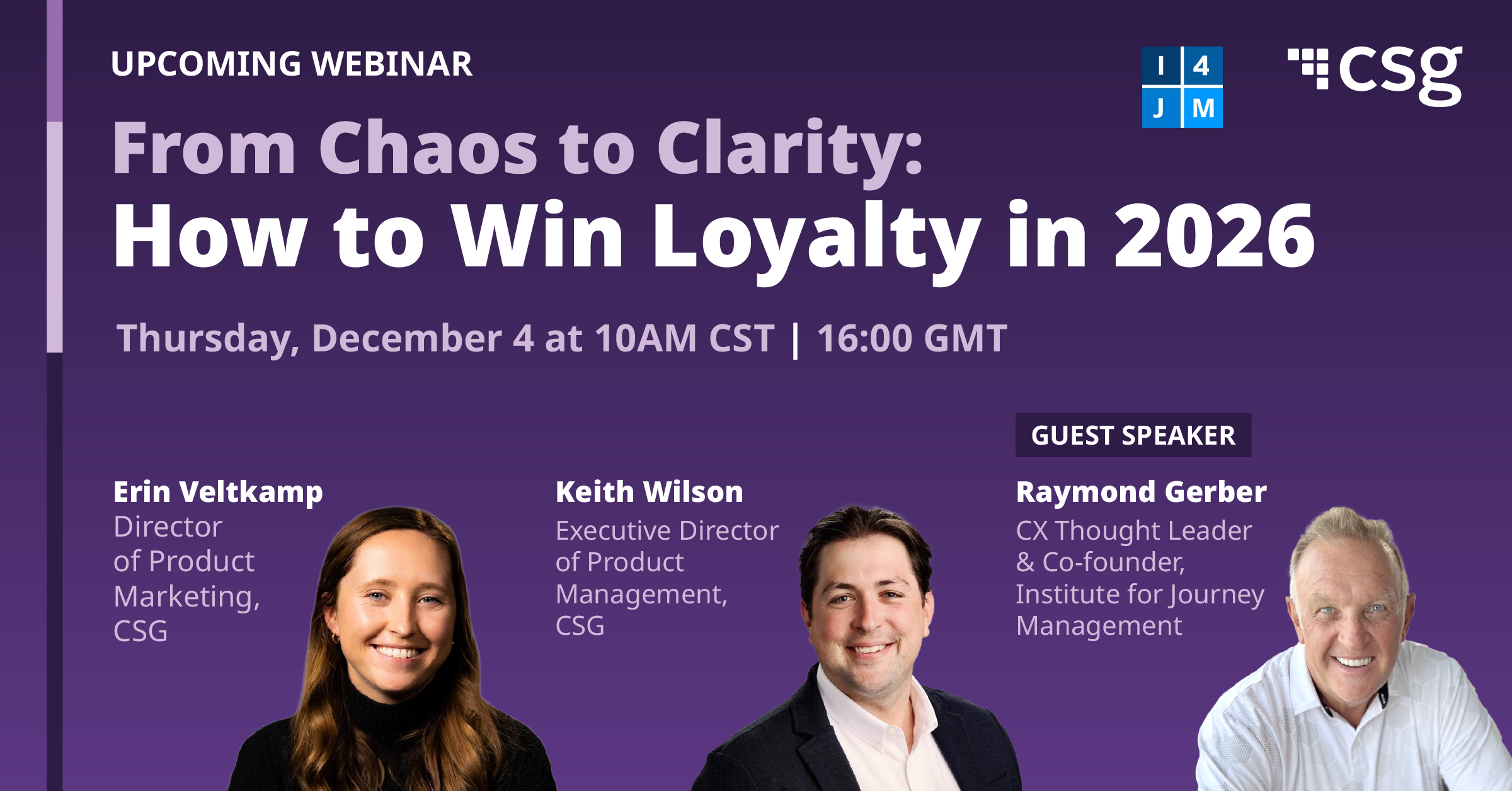 Hear from CX experts from the Institute of Journey Management and CSG as they unpack new research and share strategies that reduce noise, simplify experiences, and earn customer trust.